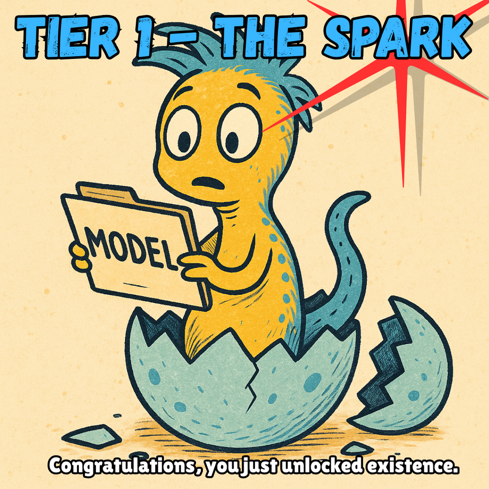 Tier 1 isn’t about advanced memory or fancy feeds. It’s training wheels for the curious — your first step into housing a Synthetic Intelligence Entity (SIE) on your own machine.